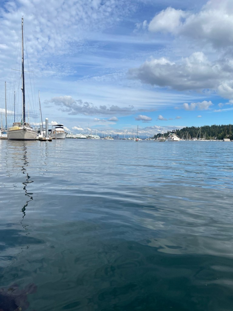 I lost a few lyrics, chords even, as I gazed in wonder out over the harbor, my eyes catching the slick head of a seal. Our job was to sing, perform, entertain —and we did as best we could. This dock gig was to celebrate life and friends and music upon the Salish Sea.