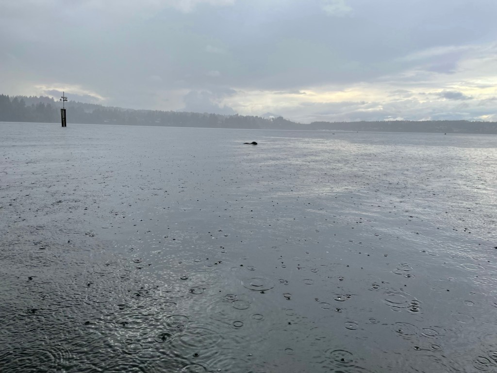 My eyes scanned the water, watching the endless circles and then I saw him. A seal. His dark head appeared in a blink. Less than 20 feet away, a lone seal cruised lazily past, studying me across the meadow of rain drop flowers. Our gazes locked, and he drifted by gingerly, watching me.