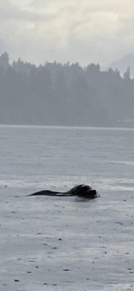 The Salish Sea and I made an unscheduled trade—my glasses (that I typically wear all the time, except when swimming) for this fantastic viewing of a massive yellow jellyfish and a moon snail shell to add to my collection.