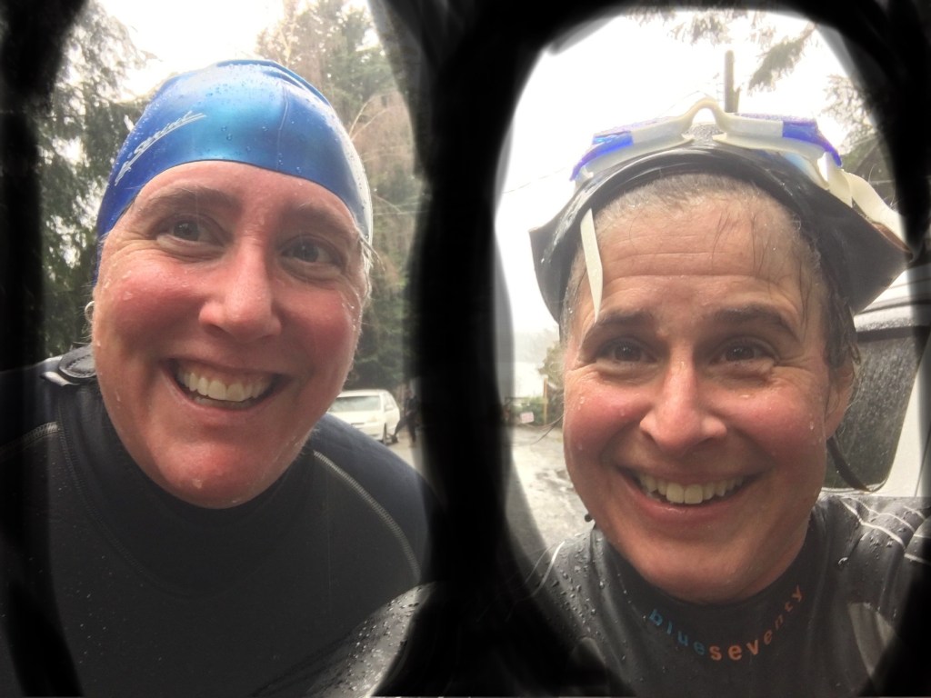 As we said goodbye, I told Liz that most every swim I’ve done this month I’ve had somebody with me. I don’t know if I would have made it through late January and most of February without people with me—my husband Josh at the waterfall, my neighbor Dave in the ice, my friend Mckayla in Port Madison and today Liz, in the freezing rain.