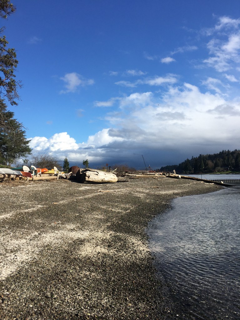 And that’s okay. As I swam south to meet my friend onshore, crows gathered and seagulls arrived to help us write a new story. We wrapped our cold bodies up in layers of wool and cotton and contentment, perched on a log to sip “crow-coa“, as Mckayla so creatively quipped. We reminisced about our younger days in this bay, the names of old neighbor friends rolling off her tongue and sighs hovering between us like balloons. Suspended and cheerful.